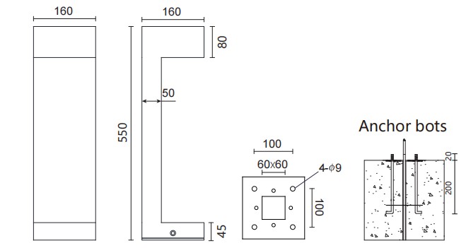 The anchoring devices provided by ET Lighting are all made of SS304 material, with high strength, corrosion resistance, and long lifetime.