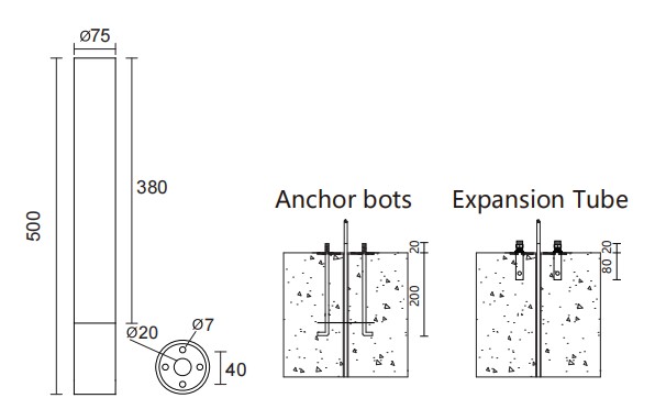 The anchoring devices provided by ET Lighting are all made of SS304 material, with high strength, corrosion resistance, and long lifetime.