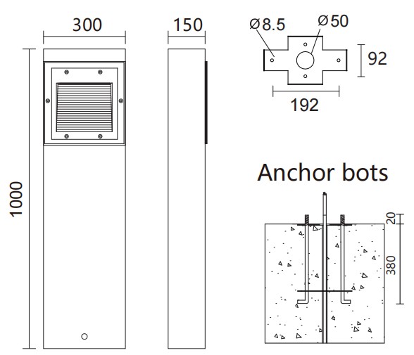 Stainless steel external screws and mounting plate.