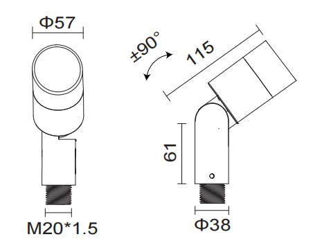 Vertically ± 90 ° adjust and horizontally 360 ° rotate.