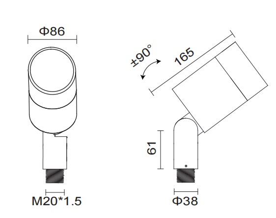 Vertically ± 90 ° adjust and horizontally 360 ° rotate.