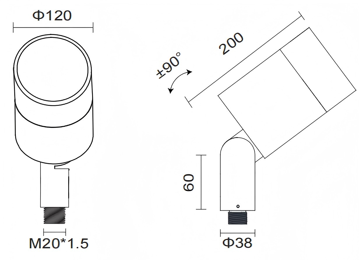 Vertically ± 90 ° adjust and horizontally 360 ° rotate.